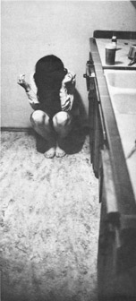 A trancelike, slow-motion state envelops most people on an LSD trip, although in their own minds their thoughts seem to race with fantastic speed and clarity. They will stare at the most trivial objects for minutes at a time, transfixed by the sudden beauty and significance they find there. A sculptor attending an LSD party in Detroit (above left) is so moved by the pattern of a shabby chair covering that he spends half an hour trying to take a picture of it. A young boy in Los Angeles (left) drifts off into a dreamy euphoria. In San Francisco (below) a girl stares in wonderment at a bare light bulb against the background of a gilded ceiling. A half hour after taking the drug, a girl (right) begins to feel its effects. She crouches in a kitchen corner to begin a typical withdrawal into self-contemplation.